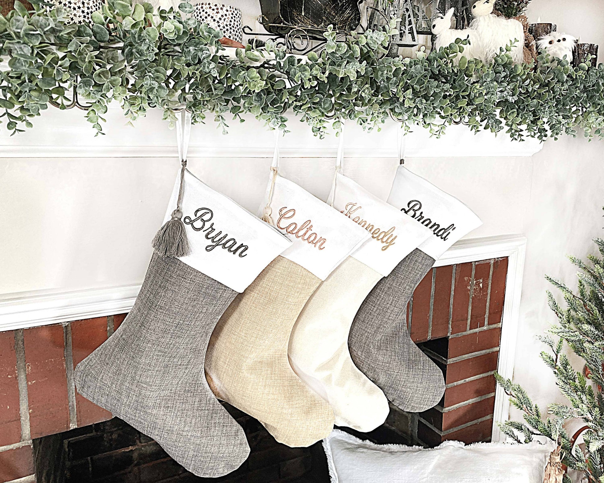 These are stocking blanks and do not include any embroidery or wooden name tags.